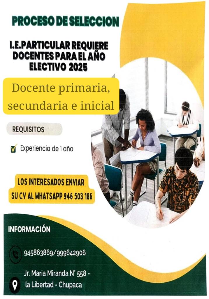 I.E. Particular requiere docentes para el año 2025