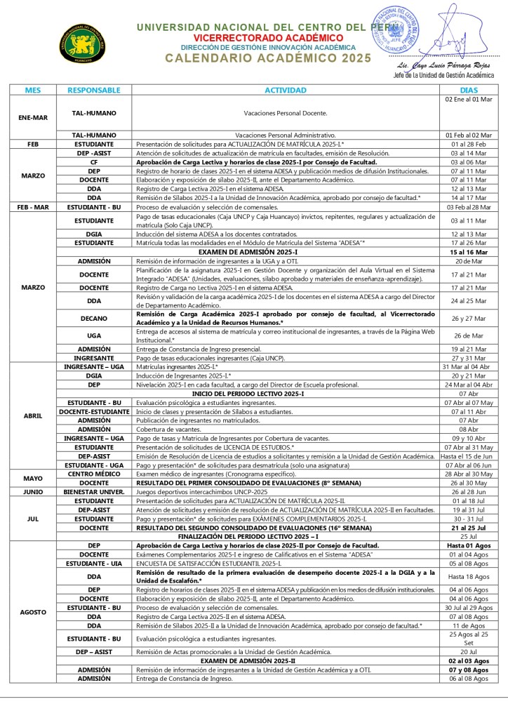 CALENDARIO ACADEMICO 2025