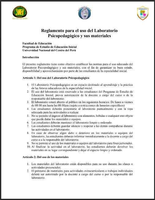 Reglamento para el uso del Laboratorio Psicopedagógico y sus materiales
